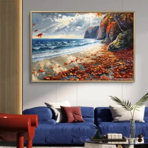 Laissez-vous emporter par la douceur d’Automne sur la Côte, une œuvre poétique où les feuilles rousses dansent avec le vent