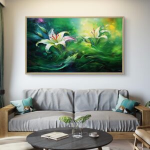 Plongez dans un monde de calme et de beauté avec Sérénité Florale, une œuvre lumineuse mettant en scène deux lys