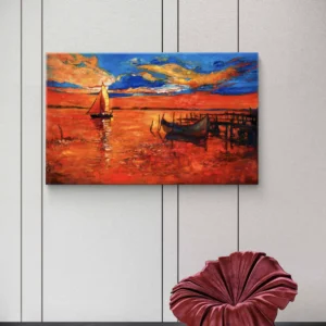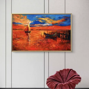 Plongez dans la magie d’un coucher de soleil flamboyant avec Crépuscule en Feu, une œuvre vibrante aux couleurs intenses. Cette