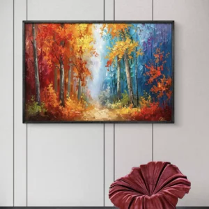 Plongez dans un voyage visuel à travers “Le Sentier des Saisons”, une œuvre d’art vibrante qui capture la magie de