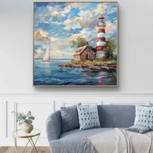 “Lumière du Rivage” est une ode à la sérénité des côtes et au charme intemporel des phares guidant les navigateurs.
