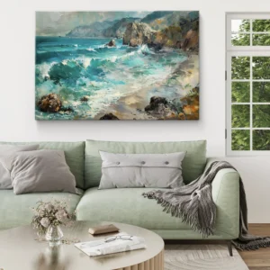 Évadez-vous au cœur d’un paysage côtier où les vagues turquoise viennent caresser une plage sauvage bordée de falaises majestueuses. Cette