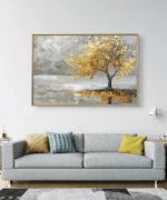Symbole de force et de renaissance, Arbre d’Or illumine votre espace avec son éclat doré et ses nuances argentées. Cette œuvre contemporaine dégage une atmosphère apaisante et luxueuse, rappelant la beauté de la nature sublimée par la lumière. Idéale pour un salon ou une chambre, elle apporte une touche d’élégance et de sérénité à tout intérieur moderne.