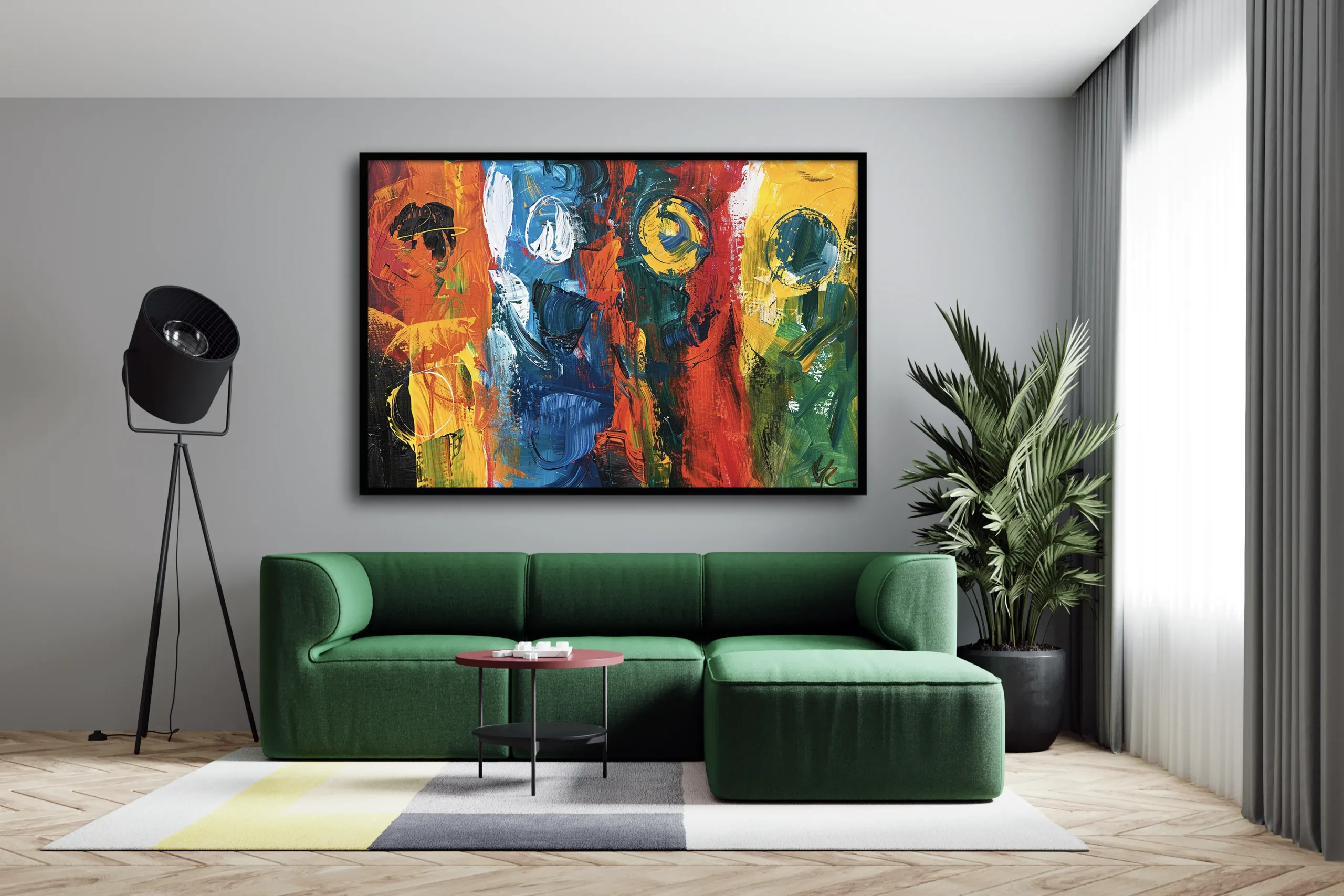 Plongez dans l’univers vibrant de "Harmonie Chromatique", une œuvre d’art contemporaine qui marie avec audace des teintes puissantes de rouge, bleu, jaune et noir. Cette toile abstraite évoque l’énergie, la créativité et l’équilibre à travers une composition dynamique et texturée. Parfaite pour sublimer un salon moderne ou un espace de vie design, elle attire le regard et reflète une véritable sensibilité artistique. Une pièce maîtresse qui transforme votre intérieur en une galerie inspirante.