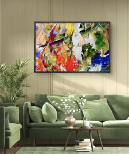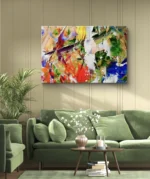 Harmonie Sauvage est une explosion de formes et de couleurs qui capturent la beauté brute de la nature. Les coups de pinceau libres mêlent vert, rouge, jaune et bleu dans une danse vibrante d’énergie et de spontanéité. Cette œuvre abstraite évoque la force vitale et l’équilibre fragile du monde naturel, apportant à votre intérieur une touche de fraîcheur, de mouvement et d’authenticité.