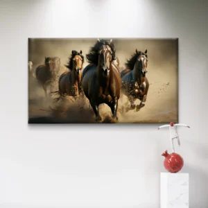 “Impulsion Sauvage” est une explosion d’énergie et de liberté, incarnée par un cheval puissant lancé à toute allure. La toile